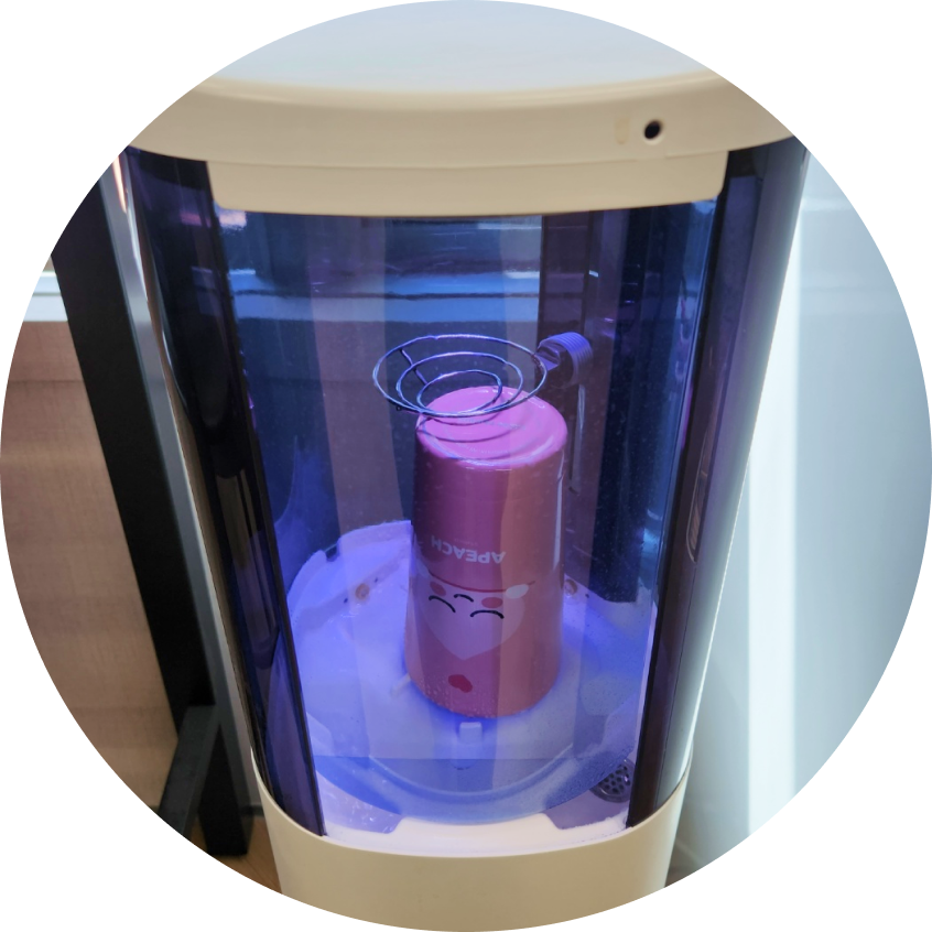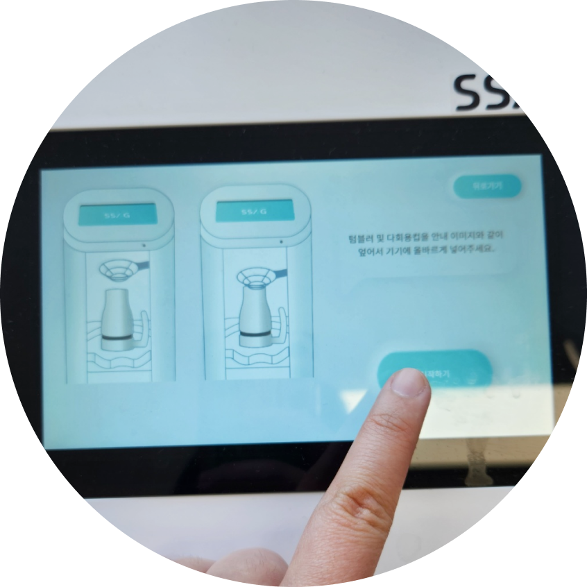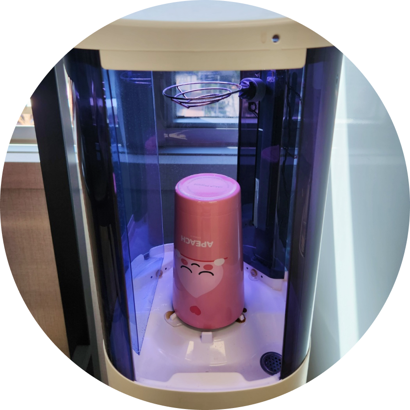 더러워진 텀블러를 쏙싹 세척기 안에 넣는다.