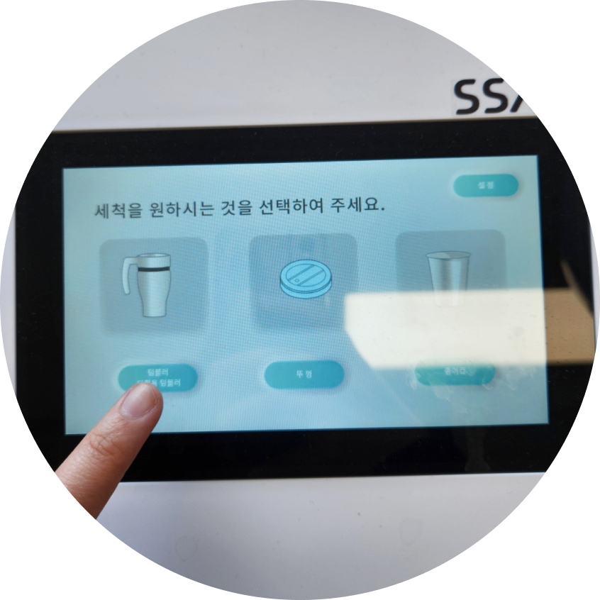 세척을 원하는 항목(뚜껑)을 골라 버튼을