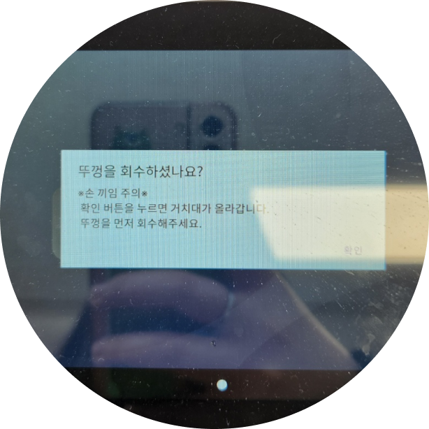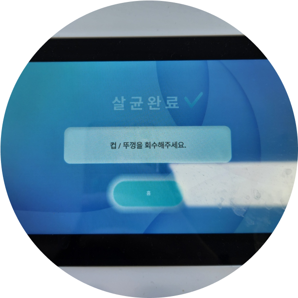 [확인] 버튼을 누르면 뚜껑 세척이 종료된다.